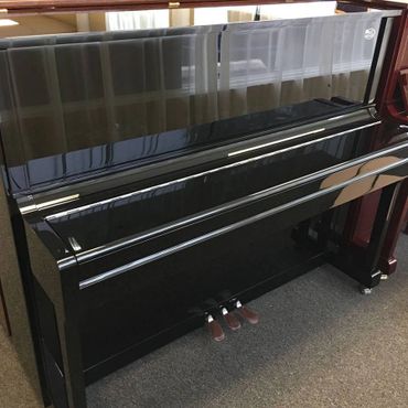 This overstrung polished Ebony Hailun 120-SE is ideal for all levels of player, from beginner to advanced. It has shiny Chrome fittings and comes with a rich, powerful acoustic tone and overall presence. It features top quality components found in the finest pianos in the world including German hammers, Röslau strings, and Siberian spruce soundboard for rich tone. You will also have excellent tuning stability with 17 layers of hard rock maple in the pinblock. The casing is sleek, beautifully designed and suits almost any setting, from the home to recording studio. Unlike Yamaha and Kawai, there is no plastic in the action!